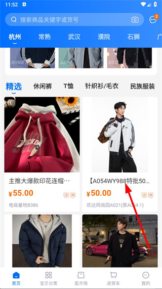 1、打開網(wǎng)商園app,在首頁(yè)瀏覽商品,找到想要購(gòu)買的衣服后,點(diǎn)擊該商品進(jìn)入商品詳情頁(yè)。