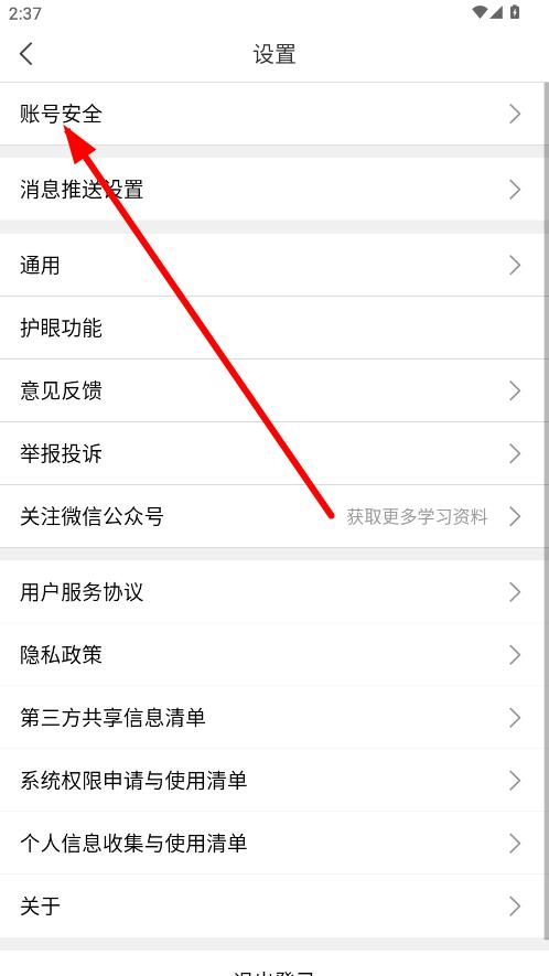 3、在設(shè)置頁(yè)面里,點(diǎn)擊賬號(hào)安全選項(xiàng),進(jìn)入賬號(hào)安全界面。