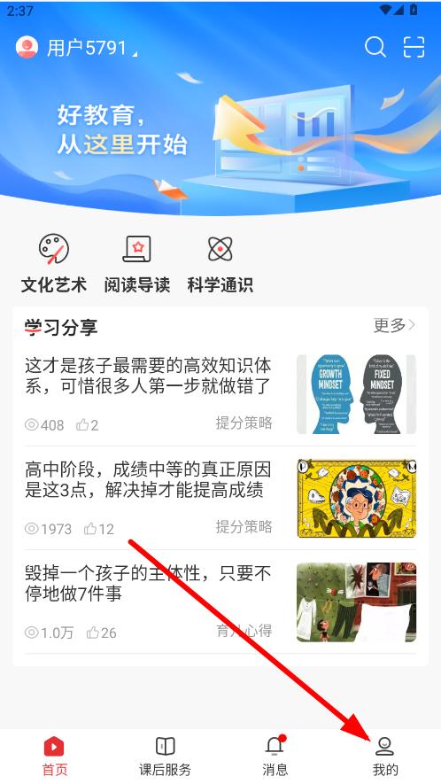 1、在課后網(wǎng)首頁(yè),點(diǎn)擊右下角我的選項(xiàng),進(jìn)入個(gè)人界面。
