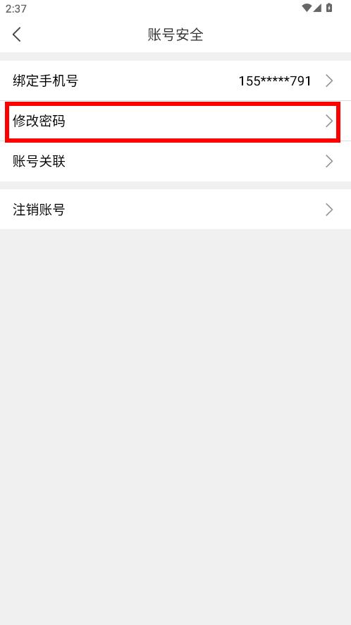 4、在賬號(hào)安全界面中,點(diǎn)擊修改密碼選項(xiàng),即可進(jìn)行密碼修改操作。