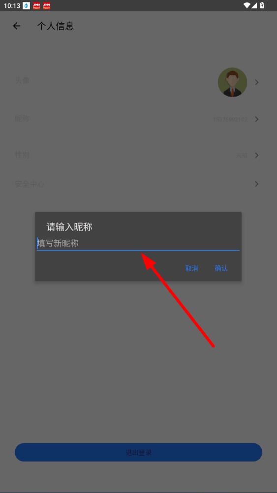 4、若要修改昵稱,點(diǎn)擊昵稱欄,在彈出的輸入框中填寫新昵稱,然后點(diǎn)擊確認(rèn)完成昵稱修改。