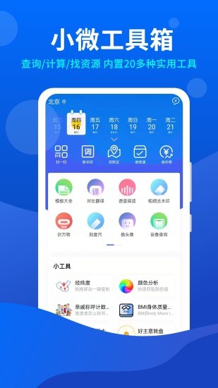 小微工具箱軟件是可以讓你在一個app內(nèi)就能使用到各種工具的合集,在一個軟件就能幫助處理日常生活中常見的問題,例如刻度測量、快遞查詢、計算器等多種功能,可以把它下載到手機中隨時使用。
