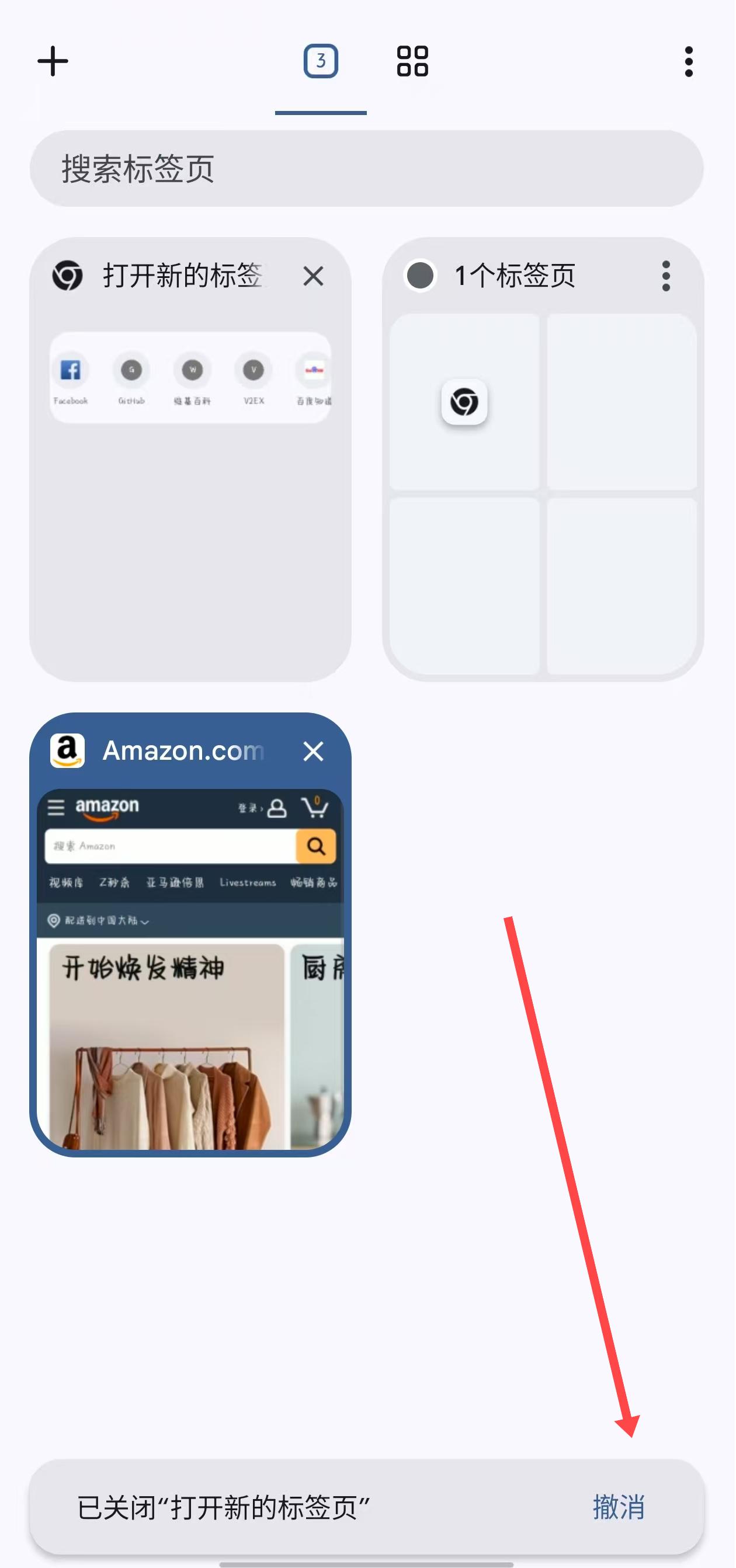 1、打開瀏覽器,若誤關(guān)了打開新的標簽頁,看到頁面下方已關(guān)閉打開新的標簽頁提示,可點擊撤銷,恢復(fù)該標簽頁。