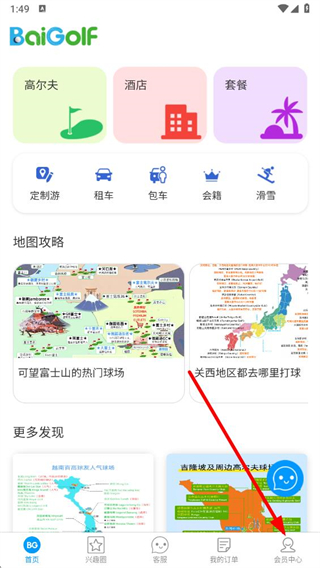 1、打開百高app,點擊底部導(dǎo)航欄中的會員中心選項,進(jìn)入會員中心頁面。