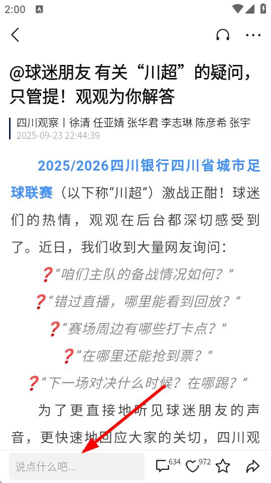 3、在內(nèi)容的詳情頁,點(diǎn)擊底部說點(diǎn)什么吧輸入框,輸入評論內(nèi)容。