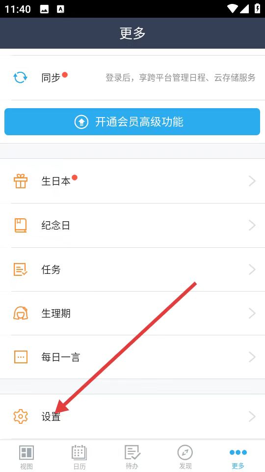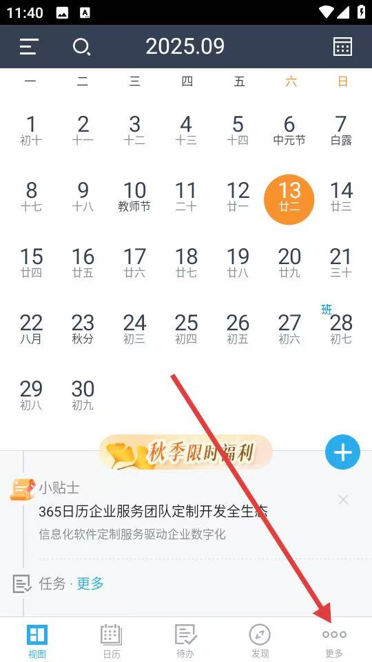 1、打開365日歷,點擊底部導航欄的更多選項。