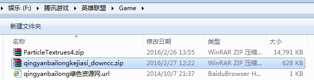 第二步:打開騰訊游戲——英雄聯(lián)盟——game文件夾并將下載的皮膚包復(fù)制進(jìn)去