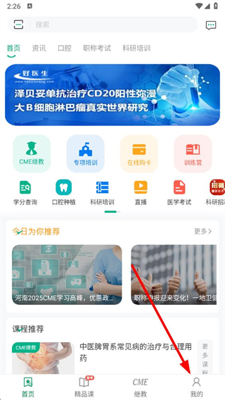 1、打開(kāi)好醫(yī)生app,點(diǎn)擊底部導(dǎo)航欄中的我的選項(xiàng)。