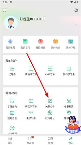 2、在我的頁(yè)面中,下滑找到常用功能板塊,點(diǎn)擊關(guān)聯(lián)IC卡選項(xiàng)。