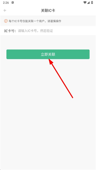 4、輸入完成后,點(diǎn)擊立即關(guān)聯(lián)按鈕,即可完成IC卡與賬號(hào)的綁定。