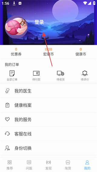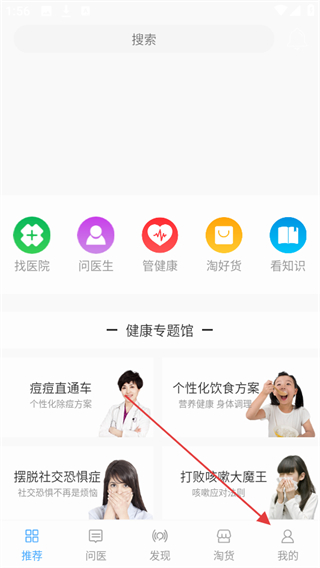 1、打開宏康醫(yī)生APP,進入首頁后,點擊底部導航欄中的我的選項。