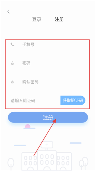 3、輸入手機號、密碼、確認密碼、驗證碼,點擊注冊。