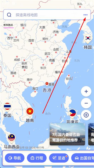 1、打開探途離線地圖,點(diǎn)擊右上角的三個(gè)點(diǎn)圖標(biāo)。