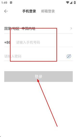 4、輸入手機(jī)號碼和密碼,點(diǎn)擊登錄,即可完成賬號登錄。