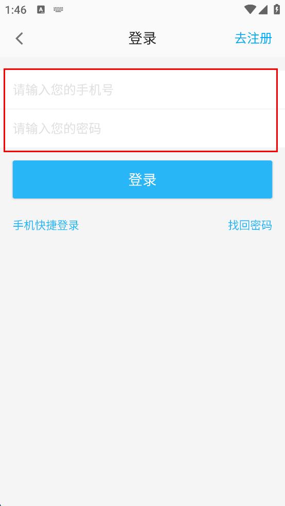 3、在登錄界面,先在“請(qǐng)輸入您的手機(jī)號(hào)”輸入框中輸入手機(jī)號(hào),接著在“請(qǐng)輸入您的密碼”輸入框中輸入密碼。