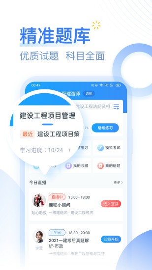 建造師考題庫手機版是適用于建造師考試的教育學(xué)習(xí)刷題app,擁有大量的題庫練習(xí),精選優(yōu)質(zhì)試題,緊跟大綱,隨你刷題,還有名師直播授課,在線詳細(xì)講解,突破重難點,還模擬實戰(zhàn)考試,助你沖刺,輕松掌握考試要點,高效備考通關(guān)!