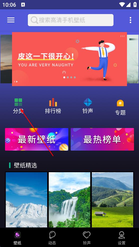 1、打開壁紙軟件,進(jìn)入主界面后,點(diǎn)擊“分類”選項(xiàng),瀏覽各類壁紙分類,找到自己感興趣的壁紙類別,從中挑選出心儀的壁紙。