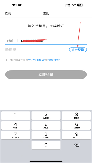 3、進(jìn)入到登錄的頁面內(nèi),輸入要登錄的手機(jī)號(hào)并點(diǎn)擊獲取。