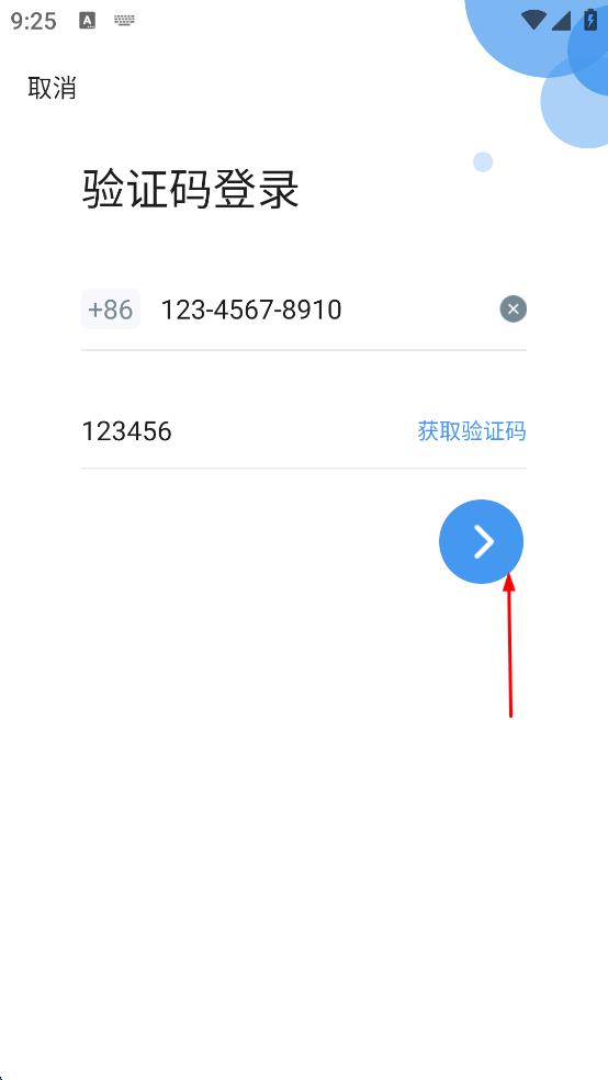 4、所有信息填寫完畢后,點(diǎn)擊頁(yè)面上的箭頭按鈕,完成登錄流程,進(jìn)入應(yīng)用的相關(guān)功能界面。