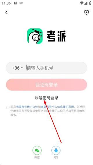 2、在登錄頁面,點(diǎn)擊賬號密碼登錄選項(xiàng)。