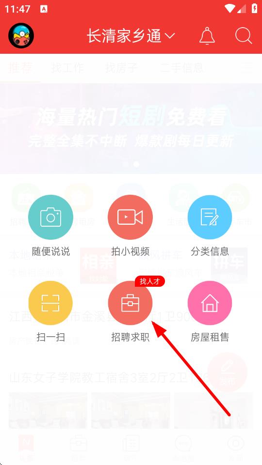 2、在彈出的發(fā)布選項界面中,點擊招聘求職圖標。