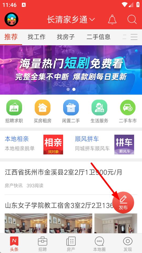1、打開智慧烏蘇app,在首頁點擊右下方的發(fā)布按鈕。
