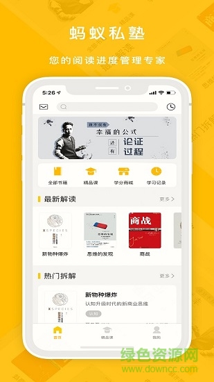 螞蟻私塾app是專為喜歡讀書的用戶們打造的手機閱讀軟件,這里有各種類型的書籍等你來閱讀,海量免費書籍讓你可以更好的學習,軟件使用簡單方便,有需要的用戶趕快來綠色資源網(wǎng)免費下載體驗吧!
