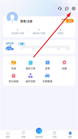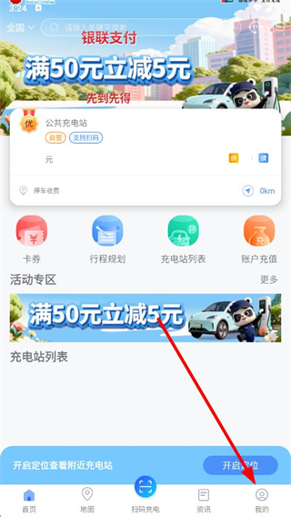 1、打開充電圈app,點擊底部導航欄中的我的選項,進入個人相關(guān)頁面。