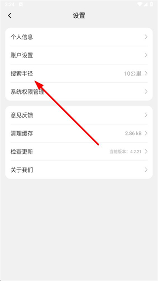 3、進入設(shè)置頁面后,點擊搜索半徑選項。