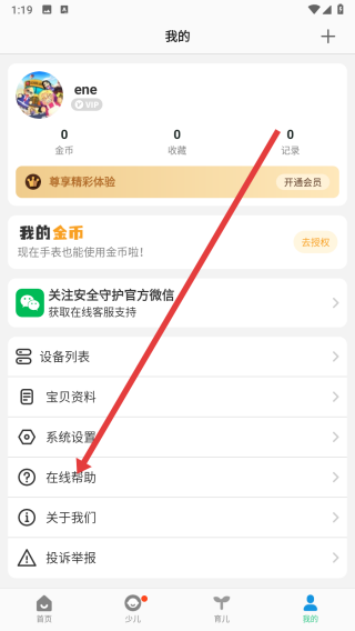 1、在進(jìn)入到我的主頁(yè)后,可以點(diǎn)擊在線幫助選項(xiàng),進(jìn)入查看相關(guān)問(wèn)題與解決方法。