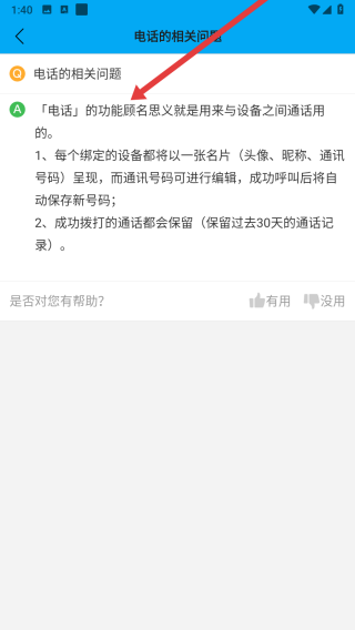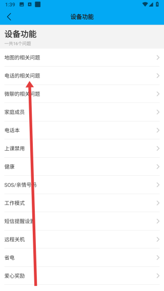 3、在進(jìn)入到設(shè)備功能問(wèn)題頁(yè)面中,可以點(diǎn)擊電話的相關(guān)問(wèn)題選項(xiàng),進(jìn)入查看。