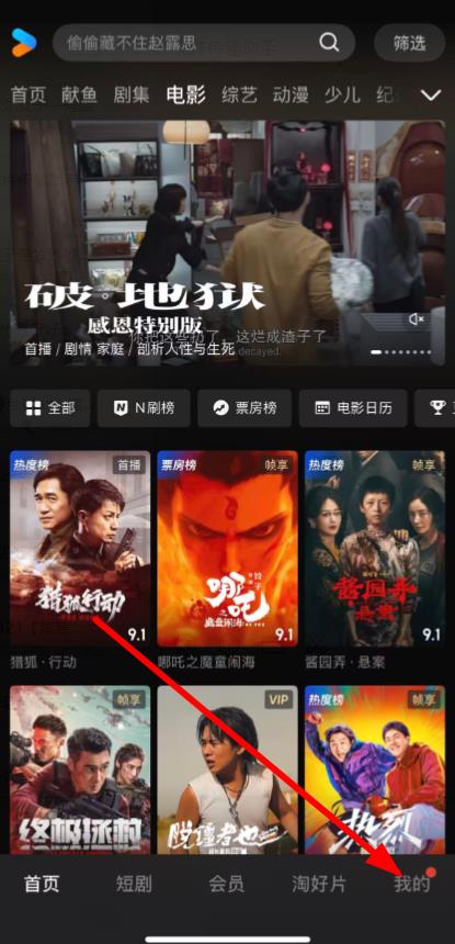 1、打開優(yōu)酷視頻的應(yīng)用,點擊首頁右下角我的圖標(biāo)。
