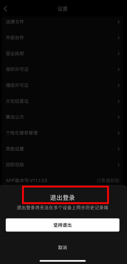 3、在設(shè)置頁面中,找到并點擊退出登錄,在彈出的確認(rèn)框中選擇堅持退出,即可退出當(dāng)前登錄賬號。