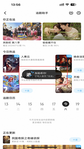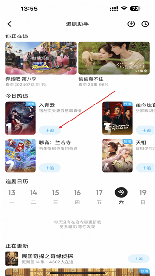 2、進(jìn)入追劇助手的頁面內(nèi),選擇要添加的視頻并點擊+追的按鈕。