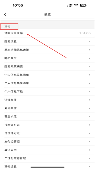 3、進(jìn)入設(shè)置的界面內(nèi),在其他下點擊清除應(yīng)用緩存即可。