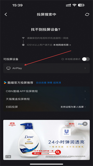 4、在投屏搜索中,選擇并點擊要投屏的設(shè)備即可。