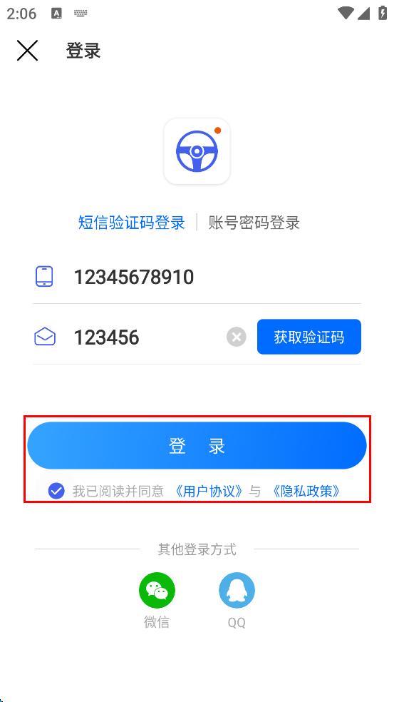 4、勾選我已閱讀并同意用戶協(xié)議與隱私政策,然后點(diǎn)擊“登錄”按鈕。