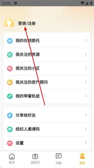 2、在我的頁面,找到并點(diǎn)擊上方的登錄/注冊選項(xiàng)。