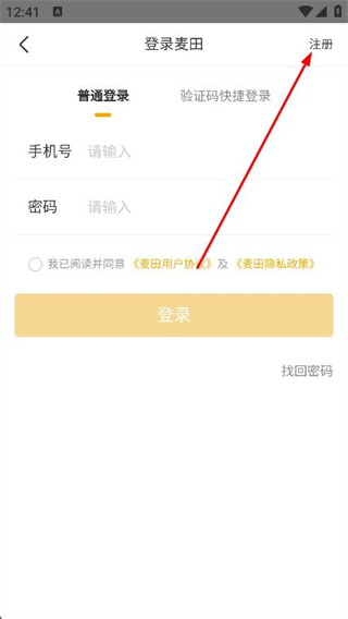 3、進(jìn)入登錄頁面后,點(diǎn)擊右上角的注冊選項(xiàng)。