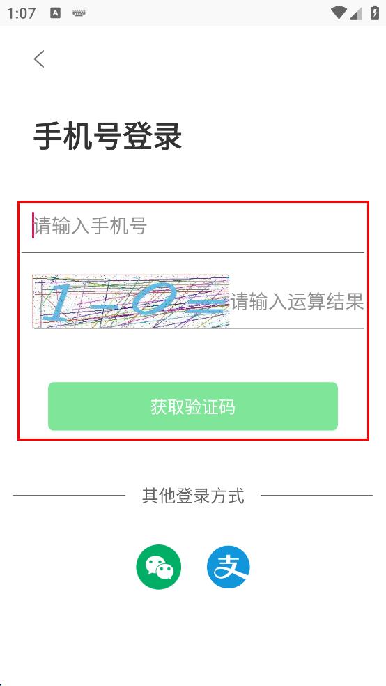 4、在手機(jī)號(hào)登錄頁面,輸入手機(jī)號(hào)碼,計(jì)算并輸入左側(cè)運(yùn)算題的結(jié)果,點(diǎn)擊“獲取驗(yàn)證碼”,等待接收驗(yàn)證碼。