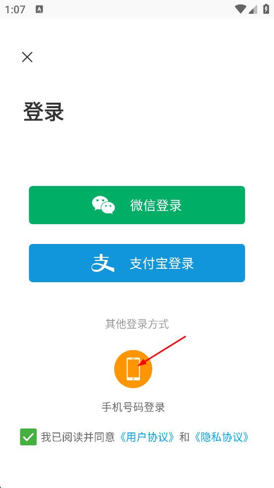3、在登錄選擇界面,點(diǎn)擊“手機(jī)號(hào)碼登錄”選項(xiàng),進(jìn)入手機(jī)號(hào)登錄頁面。