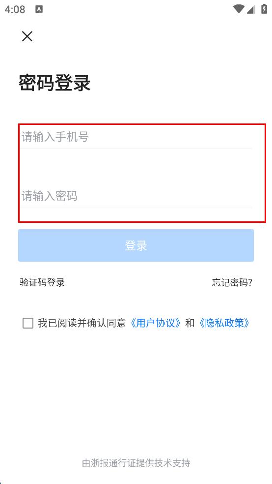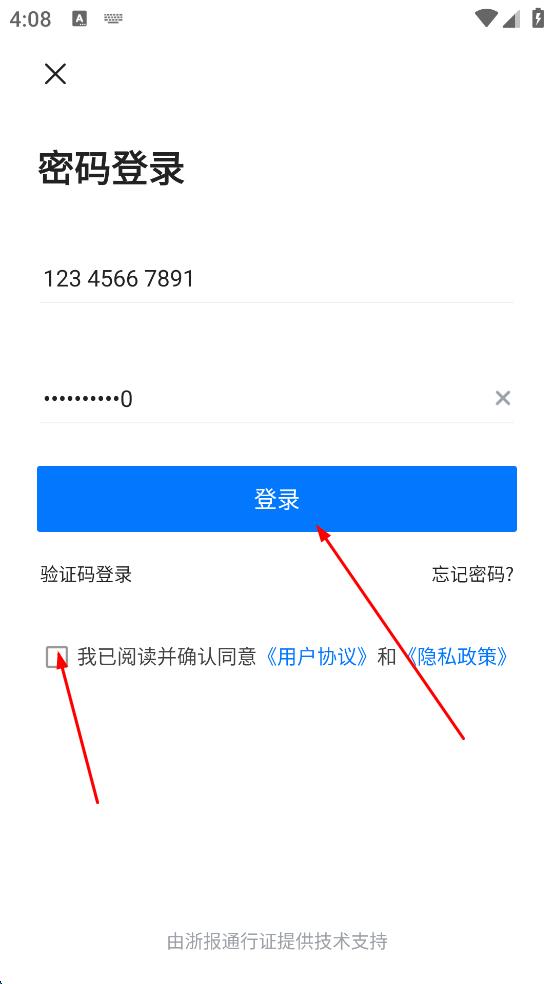 3、在登錄界面,選擇密碼登錄方式,輸入手機(jī)號(hào),接著輸入密碼,然后勾選“我已閱讀并確認(rèn)同意用戶(hù)協(xié)議和隱私政策。