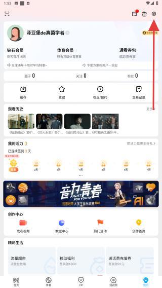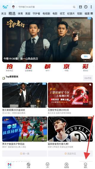 1、啟動咪咕視頻的應用軟件,在首頁內點擊右下角我的圖標。