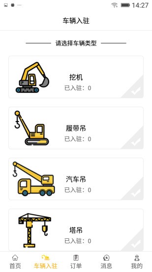 塔尖車主這里提供專業(yè)的工程車輛租賃,各位車主們可以申請入駐本平臺,選擇自己駕駛的車輛來進行找活接單,擁有挖機、汽車吊、履帶吊、塔吊,可以讓更多的司機機進行入駐。線上還有買車市場,你可以隨意查看,還能承接工程等,歡迎有需要的朋友下載使用。