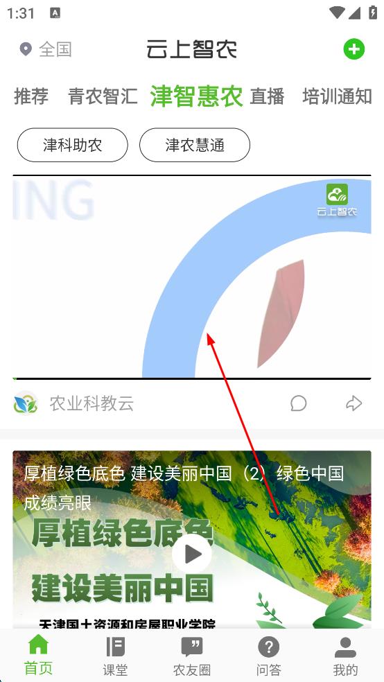 2、在APP主界面,找到頂部“津智惠農(nóng)”選項,點擊該選項,進入津智惠農(nóng)板塊,準(zhǔn)備查看相關(guān)內(nèi)容。