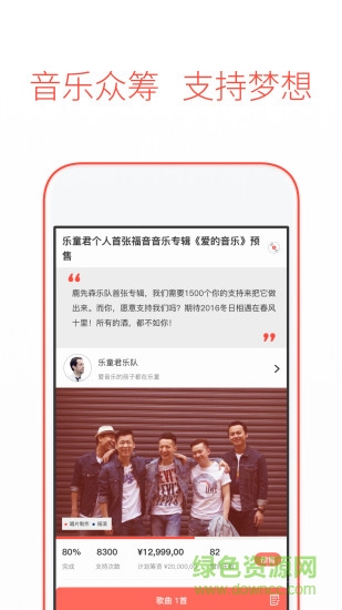 樂(lè)童音樂(lè)app是一款集演出訂票和音樂(lè)眾籌的社交平臺(tái),如果你的音樂(lè)夢(mèng)想因資金問(wèn)題而無(wú)法實(shí)現(xiàn),在這個(gè)平臺(tái)上發(fā)布出來(lái),大家會(huì)盡力幫你解決。還有全國(guó)各小眾樂(lè)隊(duì)巡演門(mén)票購(gòu)買(mǎi),喜歡小眾音樂(lè)的你可以消遣一下咯!綠色資源網(wǎng)心疼每一個(gè)有音樂(lè)夢(mèng)的孩子!