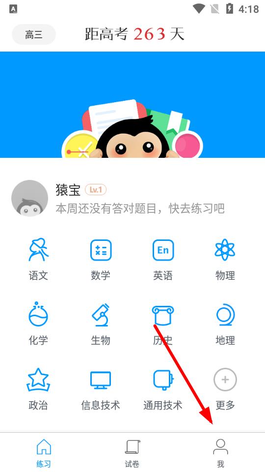 1、打開猿題庫app,點(diǎn)擊底部導(dǎo)航欄最右側(cè)的我選項(xiàng),進(jìn)入個(gè)人相關(guān)頁面。