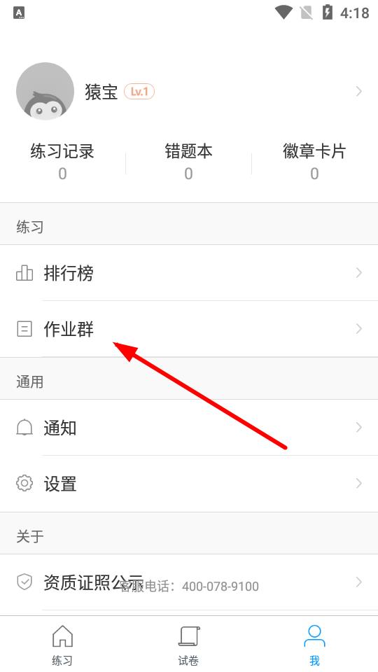 2、在我頁面中,下滑找到作業(yè)群選項(xiàng)并點(diǎn)擊,進(jìn)入作業(yè)群相關(guān)界面。