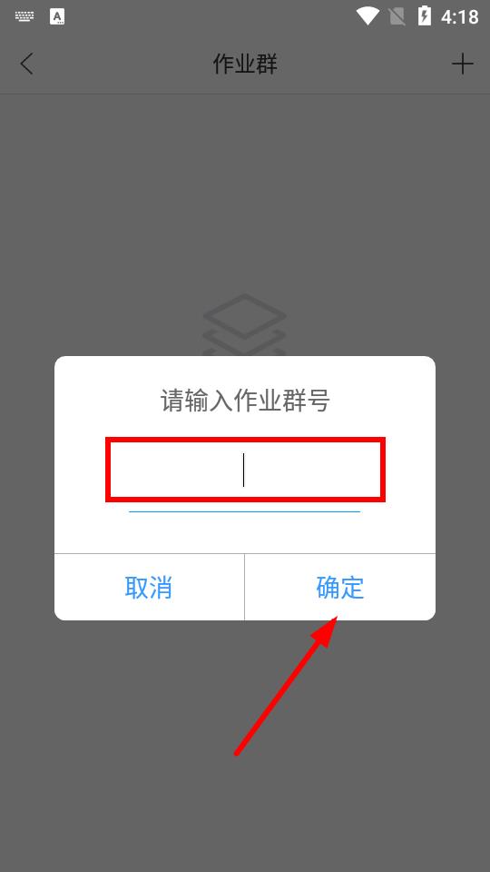 3、在作業(yè)群界面,點(diǎn)擊右上角的加號按鈕,彈出輸入作業(yè)群號的窗口。
