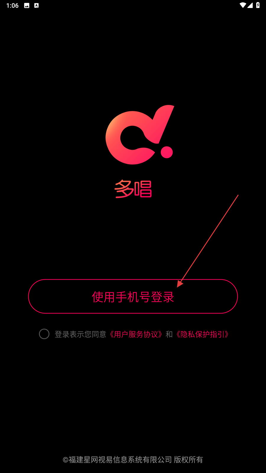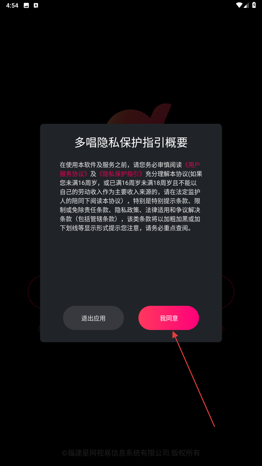 1、打開多唱app,進入時會彈出隱私保護指引概要,點擊我同意的按鈕。